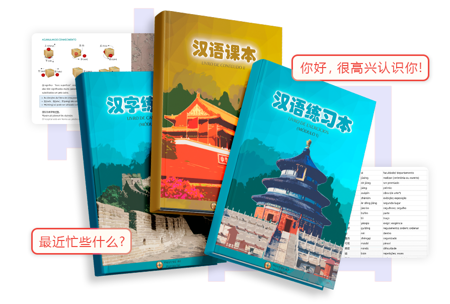 Você terá acesso a apostila de diálogos, vocabulário e todo o conteúdo das lições, além de materiais exclusivos de exercícios e escrita chinesa.